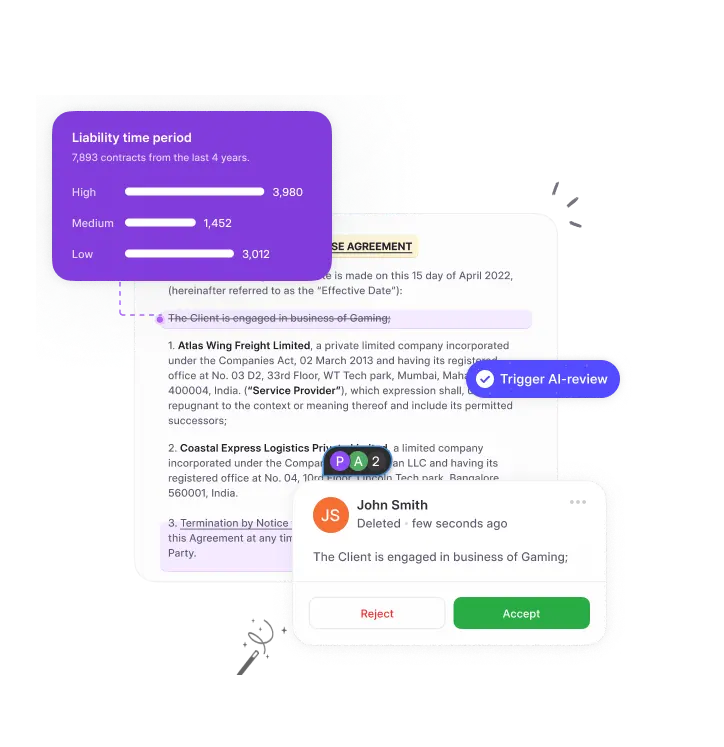 Deep search clauses and contract data you need in seconds with AI-clause detection and filters